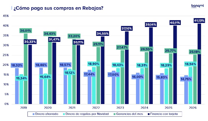 Los consumidores de rebajas seguirán este año prefiriendo las compras por internet a las físicas, según recoge la encuesta de Banqmi, que refleja que, este año 2026, el proceso de desplazamiento del consumo hacia el entorno digital continúa la tendencia de otros años, si bien con matices relevantes entre los distintos canales.